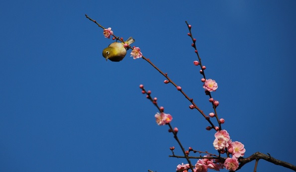 咲き始めの梅は、花びらの色も濃く、活き活きとしています。来苑の方も比較的少なく、ゆっくりとご覧になれるでしょう。