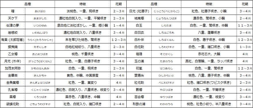 令和2年の”しだれ梅と椿まつり”は、2月18日から3月22日です。
