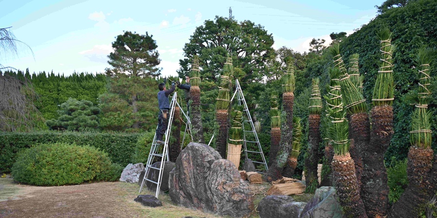 こちらは、桃山の庭の ”ソテツのこも巻き” の様子です。