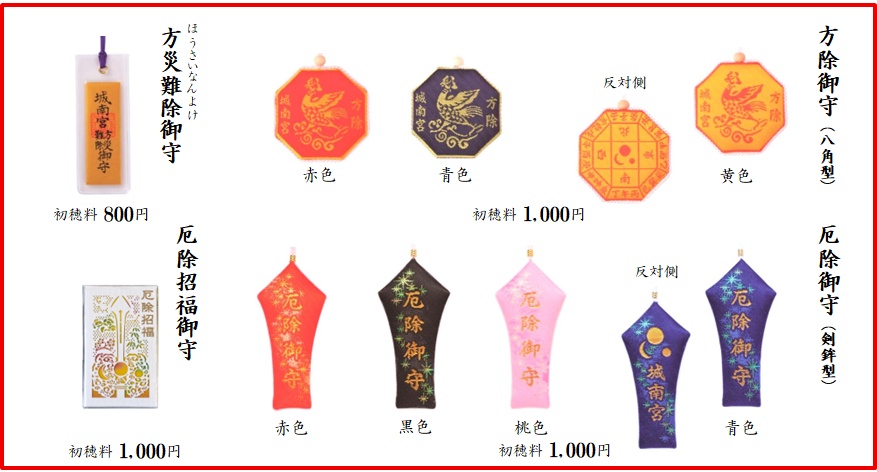 方位盤をかたどり、方位に障りがないように祈願しています。少し厚みがありますので鞄に入れて身近にお持ちください。- 方災難除御守