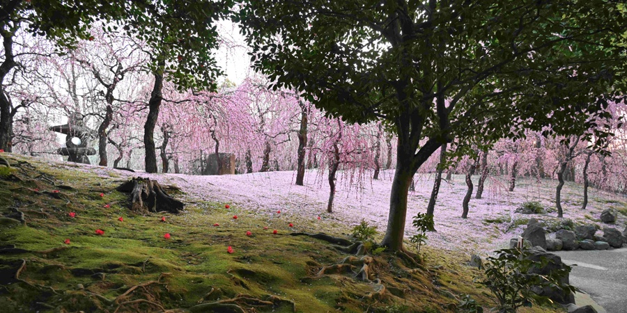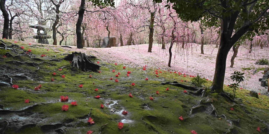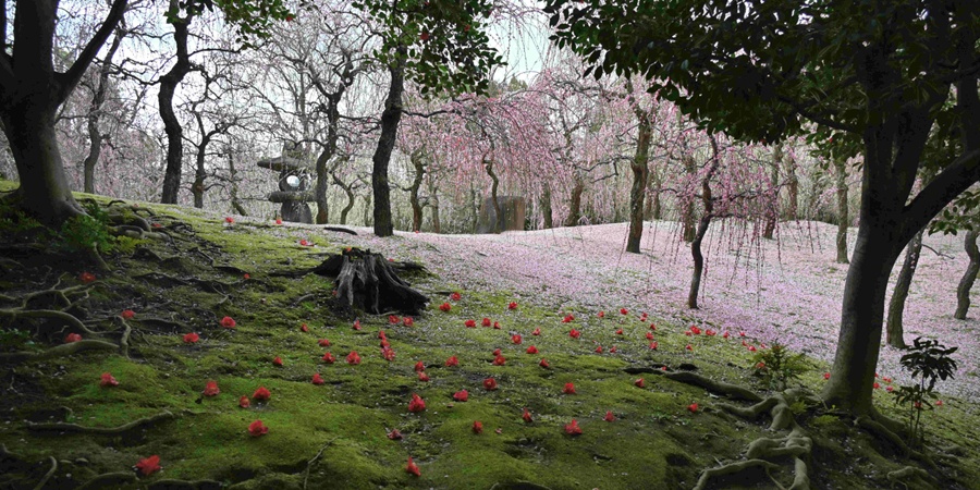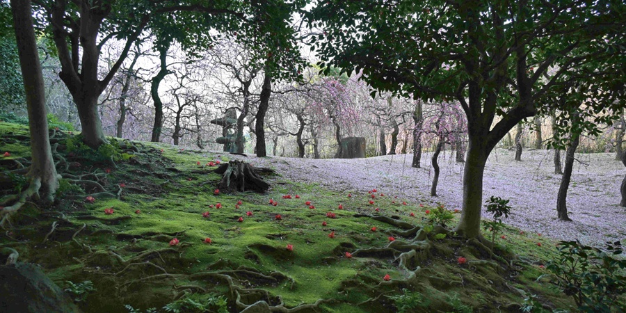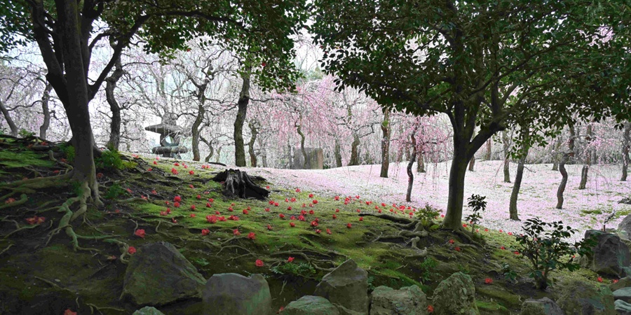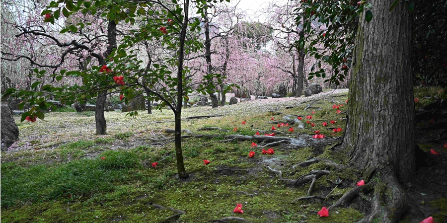 ”しだれ梅と落ち椿” の景色、引き続きお楽しみ頂けます。