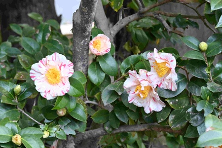 椿は、落ち椿もまだ盛んです。上記のような品種が見頃を迎えていますが、つぼみが固くまもなく花が開きそうな品種もまだたくさんあります。