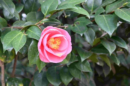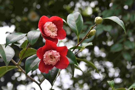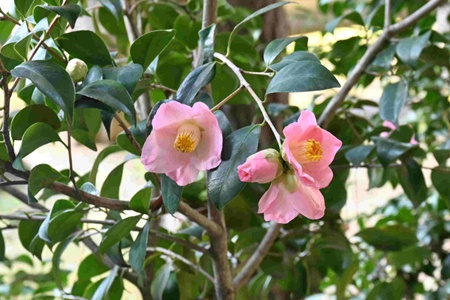 椿は、見頃です。たくさんの品種で花が咲いています。お気に入りの花を探してみてください。