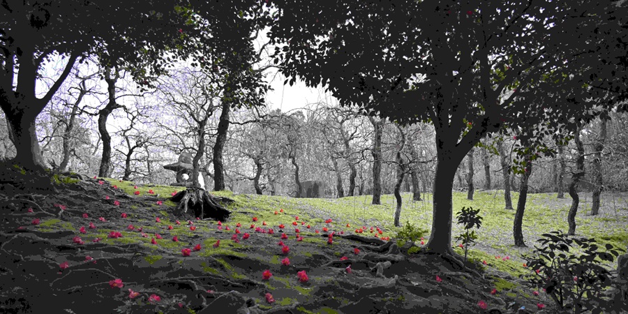 椿は見頃です。そして、落ち椿の景色は、しばらくお楽しみ頂けます。